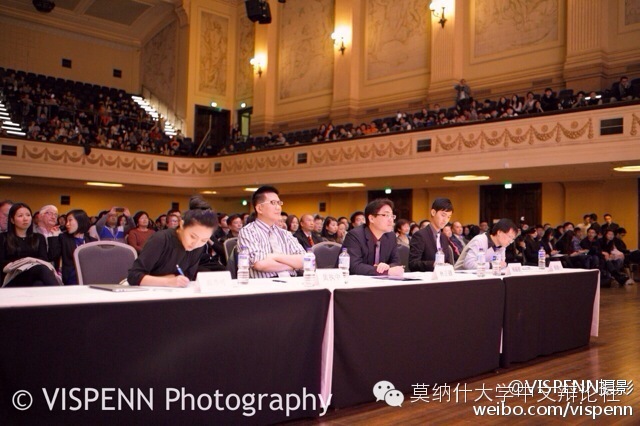 历史,总有许多巧合,去年的五月,也是墨尔本大学和莫纳什大学在决赛相遇。而那次,墨尔本大学铩羽而归,屈居亚军。所以今年,墨尔本大学更是数位从资历到经验都极为丰富的老辩手们,组成了一支史无前例的强队。其中三辩夏璐是前国立大学的冠军辩手也是墨尔本大学的博士研究生,二辩王志享除了是墨尔本大学辩论社社长之外更是早已国际扬名的马来西亚辩手。而另外一边,莫纳什大学为了迎战劲敌,由被称为小包神的队长包江浩领衔,上届全澳赛全程最佳辩手张世嘉坐镇,也派出了一支不容小觑的队伍。六时三刻,双方上台,就“当今时代,应该做痛苦的哲学王还是幸福的快乐猪”进行辩论。
